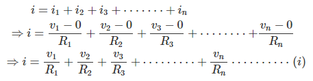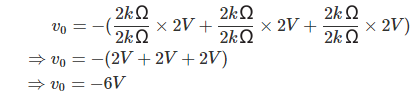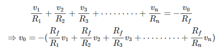 这里,n个输入端子并联连接。这里,在电路中,运算放大器的非反相终端接地,因此该终端的电位为零。作为op amp.被认为是理想的运算余量,反相终端的电位也为零。