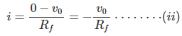 现在,在理想的运算放大器的情况下,反相和非反相终端处的电流为零。所以,按照Kirchhoff当前法律,整个输入电流通过反馈路径抵抗性R.F。这意味着,