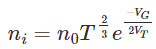 在那里,n0是一个常数,T是绝对温度,VG是半导体带隙电压,而VT为热电压。