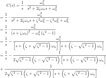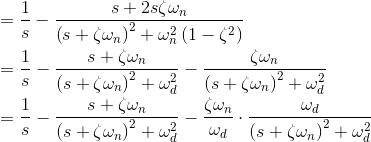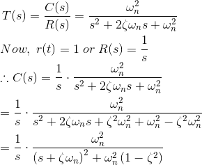 这里是ζ和ωN是系统的阻尼比和自然频率(我们将在稍后详细了解这两个术语)。重新排列上面的公式,系统的输出为