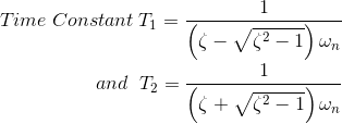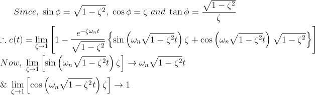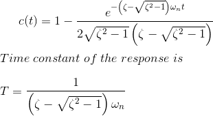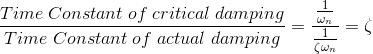 更确切地说,当阻尼比是统一时,响应是严重阻尼的,然后将阻尼被称为临界阻尼。临界阻尼对实际阻尼的时间常数与阻尼比的比率被称为阻尼比。随着控制系统的时间响应的时间常数为1 /ΩN当ζζ1和时间常数为1 /Ω时N当ζ= 1时。