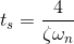 我们已经定义了响应的稳定时间是响应达到稳定状态且值超过其最终值近98%的时间。我们还观察到,这个持续时间大约是信号时间常数的4倍。二阶控制系统的时间常数为1/ζ ωN,沉降时间到期时,可表示为