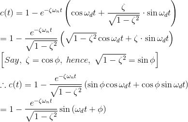 下面给出了由单位步进输入功能的二阶控制系统的时间响应表达式。