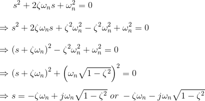 方程的这两个根或者说s的这两个值代表了这个系统的传递函数的极点。根的实部代表阻尼,虚部代表阻尼频率。