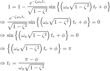 - 上升时间(T.R.)在其第一个振荡循环期间,在阻尼时间响应信号下达到最终值所需的时间。如果信号过度阻尼,则将上升时间视为响应从最终值的10%到90%所需的时间计算。