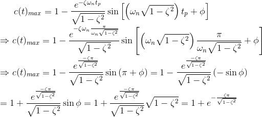 将峰值时间的表达式代入输出响应c(t)的表达式中,得到: