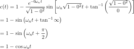 与此表达式一样,没有指数项,控制系统的时间响应是针对单位步进输入函数的零阻尼比的时间响应。