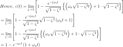 在此输出信号表达式中,主观单位阶跃函数中不存在振荡部分。因此,这种二阶控制系统的时间响应称为临界阻尼。