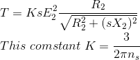 把价值置于助势φ,转子电流i2,功率因数cosθ2在扭矩的等式中,我们得到了,
