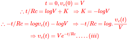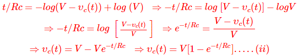 现在,从等式(III),通过应用T =τ= RC我们得到,
