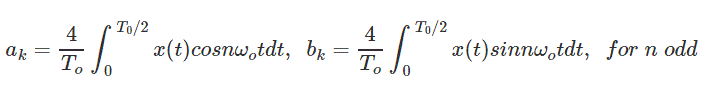 3.如果x(t)是半对称函数即x(t) = -x(t±t0/ 2)一个0= 0,k= bk当k为偶数时= 0,
