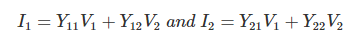在由两部分组成的网络中导纳,当前的和电压的关系,
