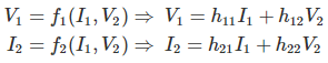 在混合参数电路中,电压增益、电流增益、阻抗和导纳用于确定电流和电压之间的关系两个端口网络。