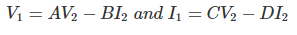 这些也被称为传输参数。在这里,电压和当前的和的输入部分用输出部分表示。