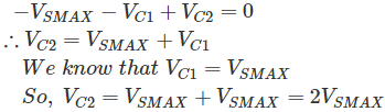 我们可以观察到电压倍压器将提供2 v年代马克斯作为输出。不需要中心抽头变压器。2 v年代马克斯将是电路二极管的峰值反电压额定值。