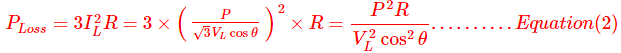 从等式(2)和(3),很明显,传输线中的功率损耗与线电压的平方成反比。线电压的较高值发生的电力损耗量较小。因此,传输线导体与直径较少,因此节省导体材料。